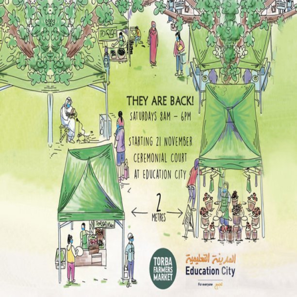 Torba operates a seasonal farmers market in Ceremonial Court at Education City. The Torba Farmers Market is a mainstay in the event calendar, attracting thousands of visitors each weekend. The market runs from November to March each year and features local fresh produce, artisan products and gourmet handmade food. It’s a great place for coffee and breakfast, as well as a spot of shopping. The community atmosphere encourages visitors to stick around and enjoy the best of Qatar’s weather, with attractions including kid’s play area, hosted workshops, open mic days and more.